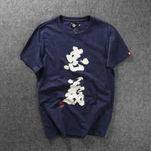 忠義新款中国风汉字印花T恤潮牌时尚男士夏季短袖情侣上装半袖