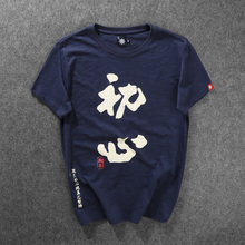 中国民族风汉字初心印花T恤 男士短袖夏季上装潮牌情侣半袖打底衫