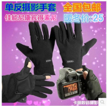 单反相机摄影手套漏指 冬季户外拍照摄像防滑防水防寒男女厚手套