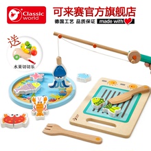 Classic world德国木制品质钓鱼游戏切切乐多功能幼儿童益智玩具