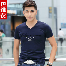 也维农夏季短袖T恤男V领韩版修身男款夏天印花男装打底衫潮流