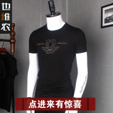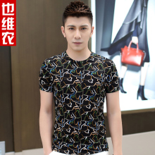也维农欧洲站短袖t恤男圆领夏季印花韩版半袖体恤修身半截袖男潮