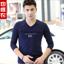 也维农男装V领 男士长袖t恤 秋装打底衫男装T恤 韩版修身体恤衫