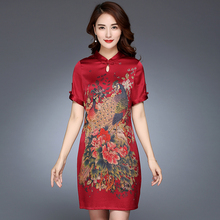 2017夏季新款中老年女装真丝连衣裙旗袍印花桑蚕丝短袖大码妈妈装