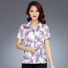 夏季中老年女装真丝连衣裙大码妈妈装印花宽松衬衫桑蚕丝短袖衬衣
