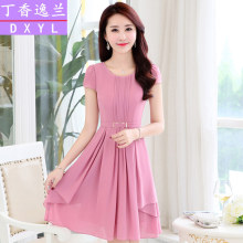 2017夏装新款韩版淑女修身收腰显瘦短袖雪纺衬衫连衣裙女中长款潮