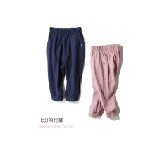 棉叔叔2017夏装新款竹节棉儿童七分裤 男女童裤子中腰哈伦裤纯棉