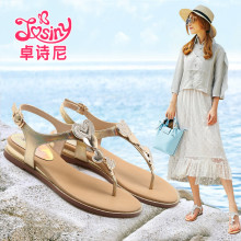 卓诗尼2017夏季新款平底女鞋休闲露趾平跟一字扣带凉鞋194720832
