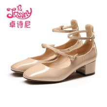 卓诗尼2016秋季新款中跟公主鞋淑女漆皮单鞋学院风女鞋163252340
