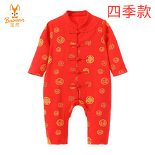 宝然婴儿连体衣唐装春秋纯棉加厚新年装红色衣服宝宝周岁礼服5309