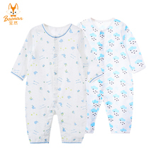 宝然婴儿衣服新生儿连体衣夏季纯棉宝宝纱布哈衣爬服长袖睡衣薄款