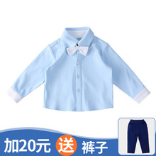 宝然男宝宝长袖衬衫婴儿衣服纯棉儿童衬衣上衣宝宝春装蝴蝶结2005