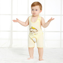 宝然婴儿夏装纯棉纱布男女宝宝连腿护肚兜背带开档裤连体衣裤5367