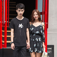 情侣装夏装短袖T恤 2017新款潮套装女连衣裙宽松夏季韩版小清新