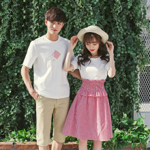 情侣装2017新款夏装潮 夏季女套装裙男短袖上衣情侣衫T恤学生装