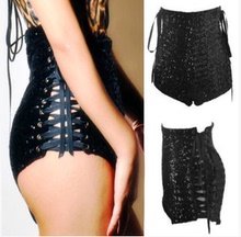 新款欧美DS演出服女歌手百搭侧面镂空交叉绑带性感亮片高腰短裤