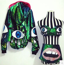 新款夜店歌手dsdj镭射祖母绿幻彩亮片嘴唇眼睛球外套套装演出服