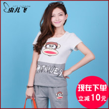 虫儿飞女装夏装新款韩版短袖时尚运动休闲套装女大码七分裤女士潮