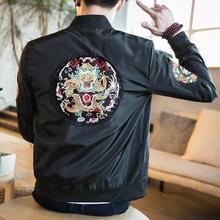 春季中国风男装龙袍刺绣龙图案薄款夹克外套加肥加大码潮胖子上衣
