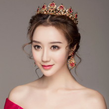 意卡佐新娘头饰结婚礼大皇冠婚纱礼服配饰欧美红色新款饰品耳饰