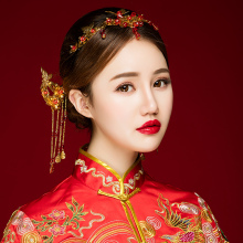 意卡佐中式新娘秀禾服头饰古装发饰红色结婚饰品婚礼龙凤褂配饰