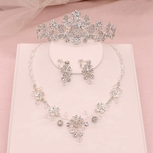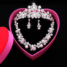 【特价不退不换】韩式新娘结婚珍珠水钻皇冠头饰三件套项链耳坠