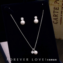 韩式锆石珍珠新娘项链耳环二件套简约礼服婚纱配饰套装结婚饰品闪
