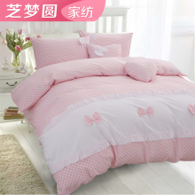 芝梦圆韩版公主风全棉斜纹床单四件套纯棉被套床上用品4件套正品