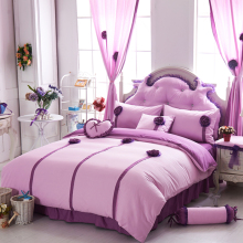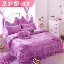芝梦圆韩式风全棉床上用品 纯棉田园公主床裙四件套1.8m紫色被套