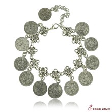 欧美fr**people古钱币流苏吊坠手链 大牌复古雕花波西米亚脚链