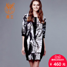 鹿王2016夏季新品桑蚕丝宽松连衣裙水墨画大牌真丝大气女装短裙