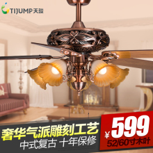 天骏 欧式复古吊扇灯 时尚家用铁叶吊扇 餐厅客厅吊灯 52寸豪华灯