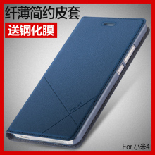 送钢化膜小米4手机壳mi4lte-cmcc侧翻盖式手机皮套男女款保护外壳