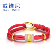 戴维尼 足金和田玉 金镶玉转运珠皮手链男款女款情侣款