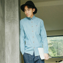 耳日2016夏装新款男士日系修身棉衬衣 青年文艺纯色长袖衬衫男