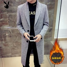 花花公子贵宾男装毛呢大衣韩版修身加绒加厚青年中长款呢子风衣