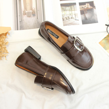 粗跟浅口乐福鞋小皮鞋2016新款英伦风中跟扣搭复古方头单鞋秋