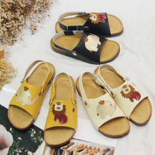 日系夏季新款凉鞋女复古风森系真皮女鞋可爱小狮子平底两用穿凉拖