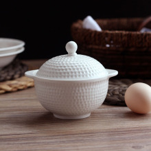 德加浮雕纯白双耳双盖炖盅 陶瓷隔水炖燕窝汤煲炖蛋羹蒸盅 包邮