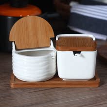 翻盖实用 欧式简约调味罐 陶瓷竹木翻盖调味料罐调料盒调味瓶包邮