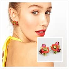 法国Les nereides珐琅彩釉红色花朵水晶耳钉耳挂新娘耳环女饰品