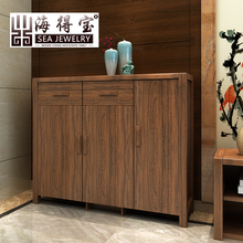 海得宝 乌金木色实木框架边框鞋柜中式板木结合门厅柜玄关储物柜
