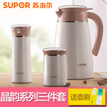 苏泊尔晶韵系列保温杯壶三件套装 不锈钢保温壶 保温杯 保温罐
