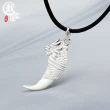 霸气狼牙吊坠 999纯银项链男士足银狼牙项链 个性情侣银饰品韩版