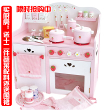 草莓正品豪华厨房灶台 儿童木制头过家家切切看做饭玩具生日礼物