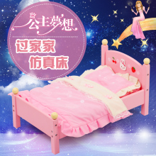 MOMO粉色米露沙龙小床娃娃床幼儿园木制芭比床儿童过家家仿真玩具