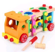儿童益智3岁以上木制可拆装螺丝车 工程车 工具车 螺母车组合玩具