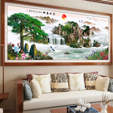 3D精准印花新款十字绣客厅大幅山水画风景迎客松流水生财挂画刺绣