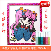 卡通DIY手工制作儿童闪光金粉画带边框 宝宝涂鸦彩绘填色绘画包邮