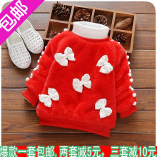 男女宝宝加绒卫衣冬装婴儿加厚打底衫0-1-2-3岁宝宝打底衫卫衣厚0